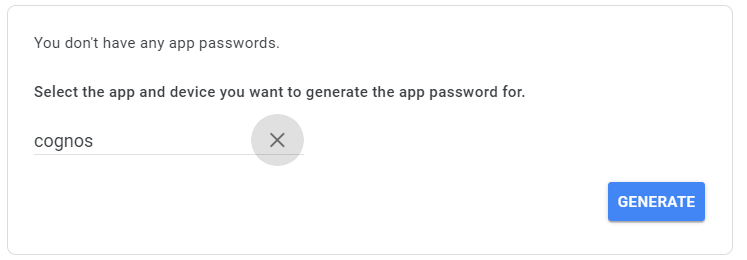 When I tried to set up Cognos 11 to send notifications via Gmail, it failed because Google blocked access from Unsecured App. Even if I tried to turn off this option and tried again, it still failed because Google automatically turned this setting off again. So I had to create an App Password for my Gmail account to make it work by following the steps below: